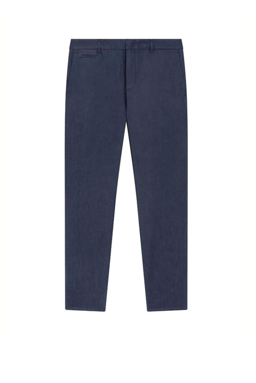 Pantaloni Joe carrot chino, vita regolare, money pocket sul davanti, una tasca a filetto posteriore ed una tasca con pattina. Denim fisso leggero blu 5.50 oz. Lavaggio scuro pulito. Logo Dondup. Made in Italy