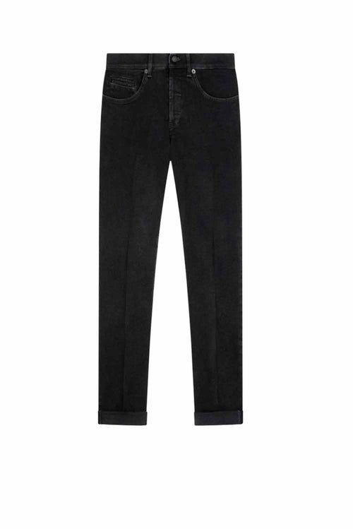 Jeans George cinque tasche skinny fit, vita bassa, taschino a filetto. Denim stretch nero 10 oz. Lavaggio nero pulito. Logo Dondup.