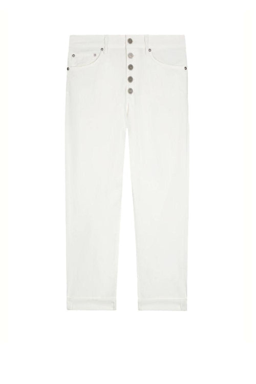 Pantaloni Koons cinque tasche loose fit, vita regolare, bottoniera gioiello, lunghezza alla caviglia. Armatura leggera di lyocell e cotone. Tintura in capo. Logo Dondup. Made in Italy.