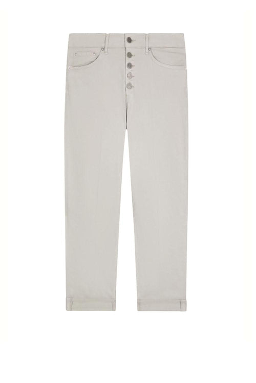 Pantaloni Koons cinque tasche loose fit, vita regolare, bottoniera gioiello, lunghezza alla caviglia. Armatura leggera di lyocell e cotone. Tintura in capo. Logo Dondup. Made in Italy.